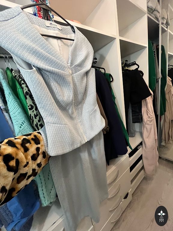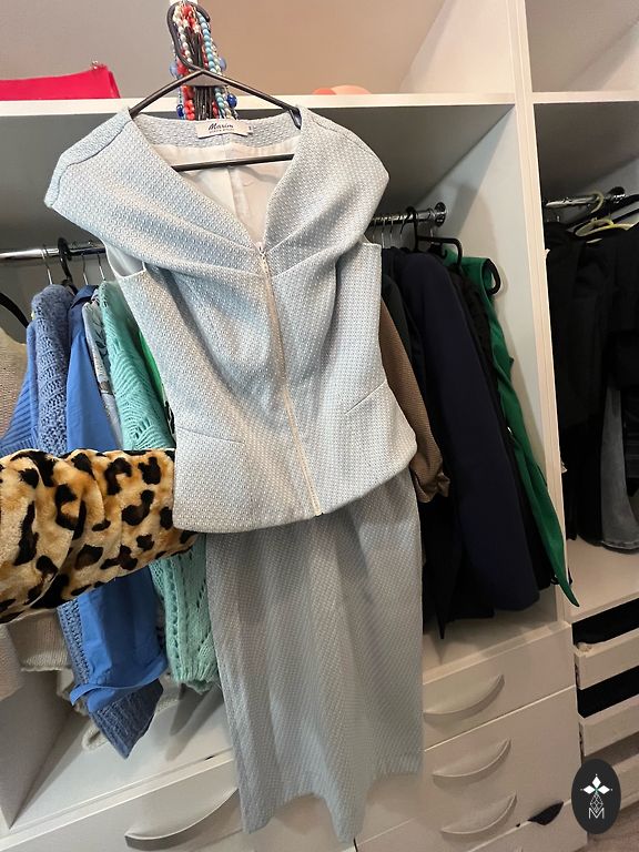 Puikus itališkas kostiumas su ažūrinėmis permatomomis detalėmis.