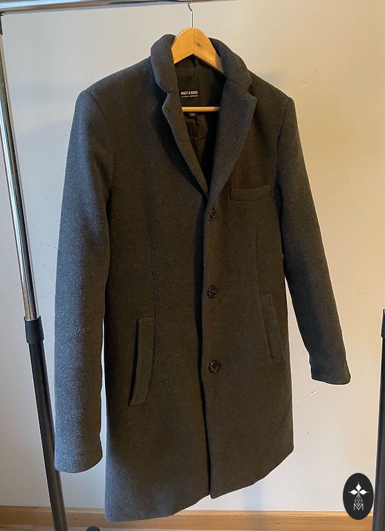 Villane mantel. Pikkus 95cm, õlgadel 49cm, varrukas 70cm.