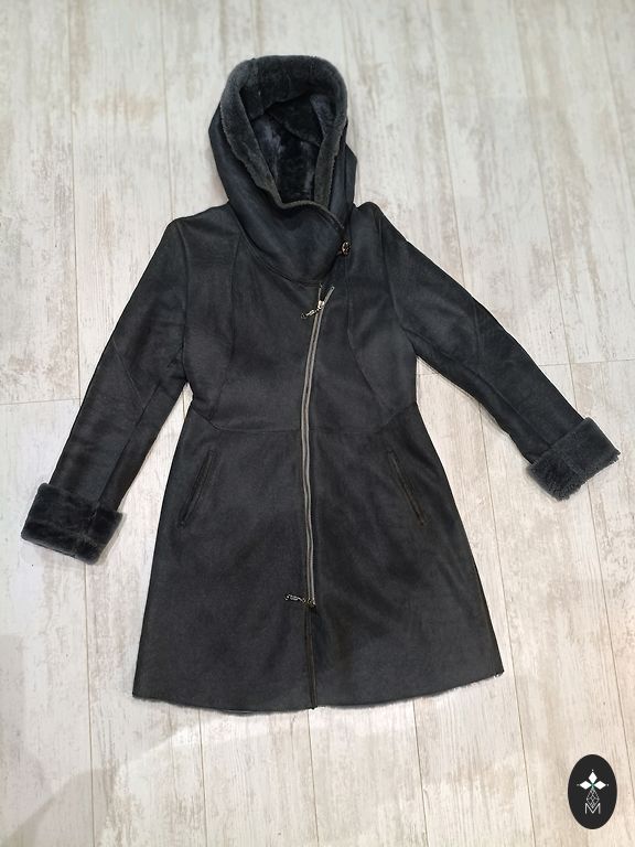 Богатый мех в очень хорошем состоянии, выглядит дорого и натурально. Длина 76 см, ширина 55x2. Застежка на крючках, есть карманы. Соответствует размеру 40-42. Настоящий цвет темнее.