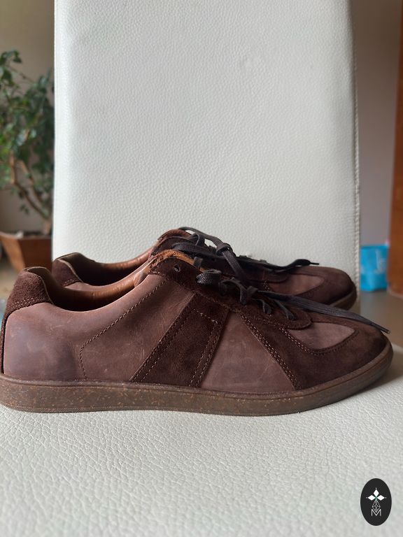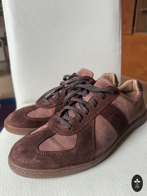 Купил кроссовки больше года назад, с тех пор носил их всего 2 раза. Они в очень хорошем состоянии. Размер 45 1/3. Цвет зеленый замш.