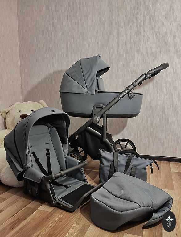 Roan Classic baby stroller with a sleeping bassinet and seating part. Can be positioned both in the driving direction and the opposite direction. The stroller has large inflatable wheels, making it easy to push in snow and beach sand. Purchased already used for one child. Our child no longer likes to ride in the stroller, so I'm selling it to free up space at home. I'm very enthusiastic about this stroller. There were no problems going for long walks on snow-covered dirt roads. On hot summer days, the (hidden behind zippers) mesh fabrics in both the bassinet and seating part were great to prevent the child from sweating. If the sun shone in the child's eyes, it was very convenient to extend and fold the stroller's canopy forward. The bassinet has a mosquito net and rain cover. The seating part also has a fabric foot cover. I will include an additional mosquito net and rain cover, which the seating part did not have. There is visible rust on the wheel rims in some places, the head support area of the seating part is faded, and inside the sleeping part, a line is visible on the canopy, which remained after washing the stroller. The stroller is located in Kocēni, near Valmiera.