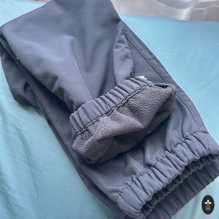 Ideālā stāvoklī, ūdensnecaurlaidīgas bikses 122 izm. Viduklītī sānos regulējams apkārtmērs ar gumiju.