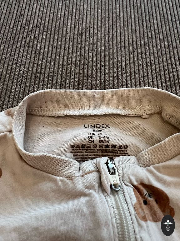 Kā zināms, Lindex bodiji ir ar regulējumu izmēru, tāpēc šis bodijs derēs līdz pat 80 cm izmēram. Defekts - kreisajā celī ieķerās diedziņš, tāpēc tas labots ar speciālu lapsas uzšūvi, kas tikai papildina kopējo tēlu.