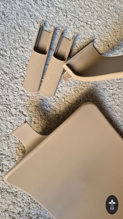 Ja galdiņu neizmantojat, to var pakārt uz krēsla aizmugurējām kājām.