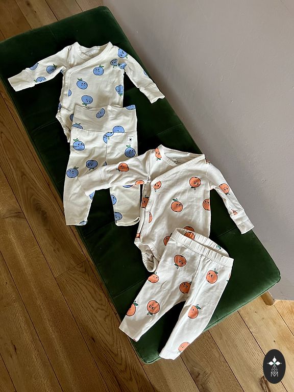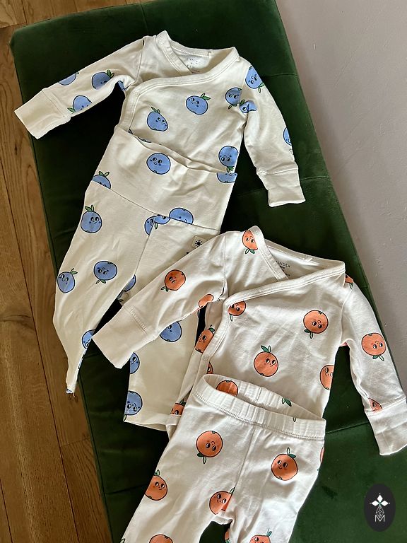 Lindex bodysuit, pants and another pair of leggings, with a small hole visible in the picture. Size 74. Delivery not included in the price.