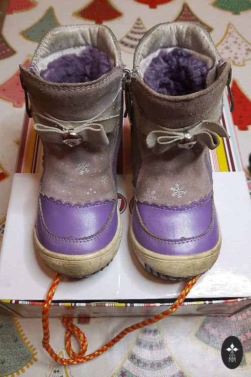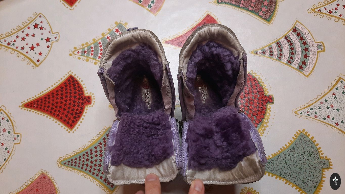 Genuine leather cover, inside real sheep's wool. Insole 12cm. Very warm and relatively little worn.