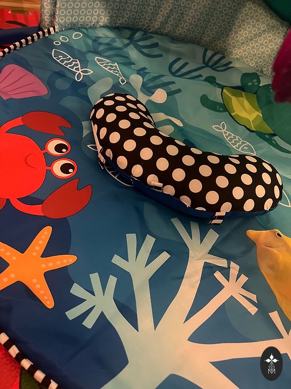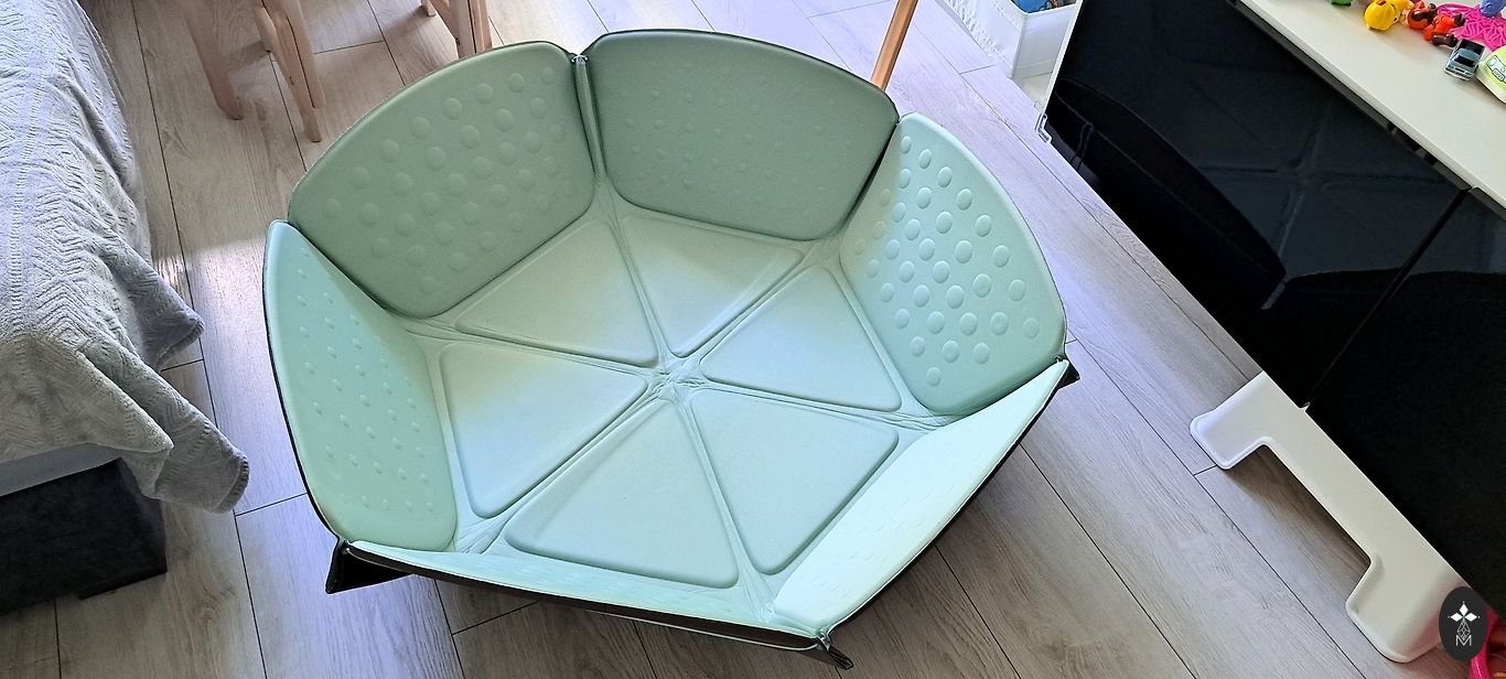 Bought new from BESTSECRET, used very little, haven't even removed the tag yet. Waterproof top, soft filling, and the mat can safely be placed on the floor for the little one to move around when visiting or changing clothes. Danish design and quality. The only thing is that the fold lines have slightly creased when carrying, but that's just a minimal visual sign of use, as the mat was already sent with 🩶