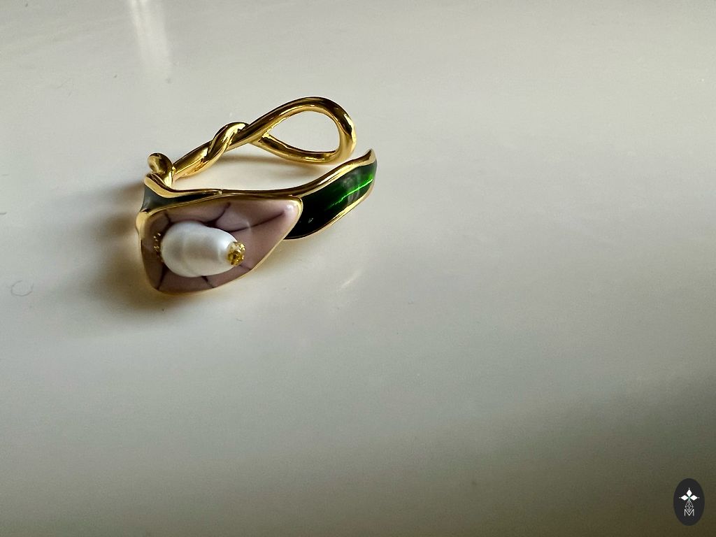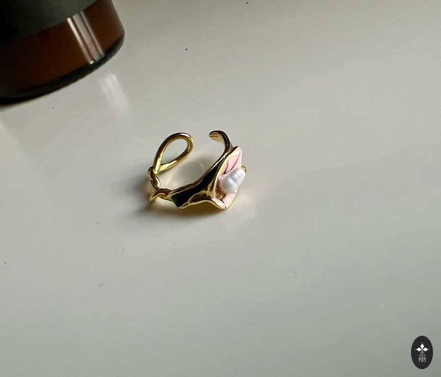 Diameter: 18 mm (ideal for index or middle finger) Material: metal alloy with pink gold plating.