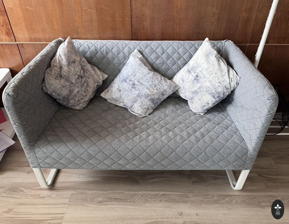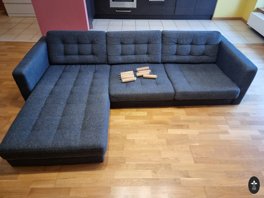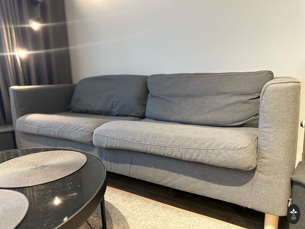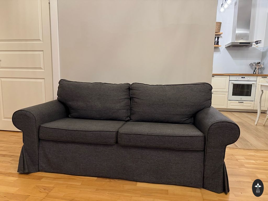 The sofa is very beautiful, comfortable, in excellent condition, used for half a year, but mostly it has been like a decoration in my office. The sofa is slightly lighter than in the pictures. I'm selling it because I want to change the tones of my workspace to beige.