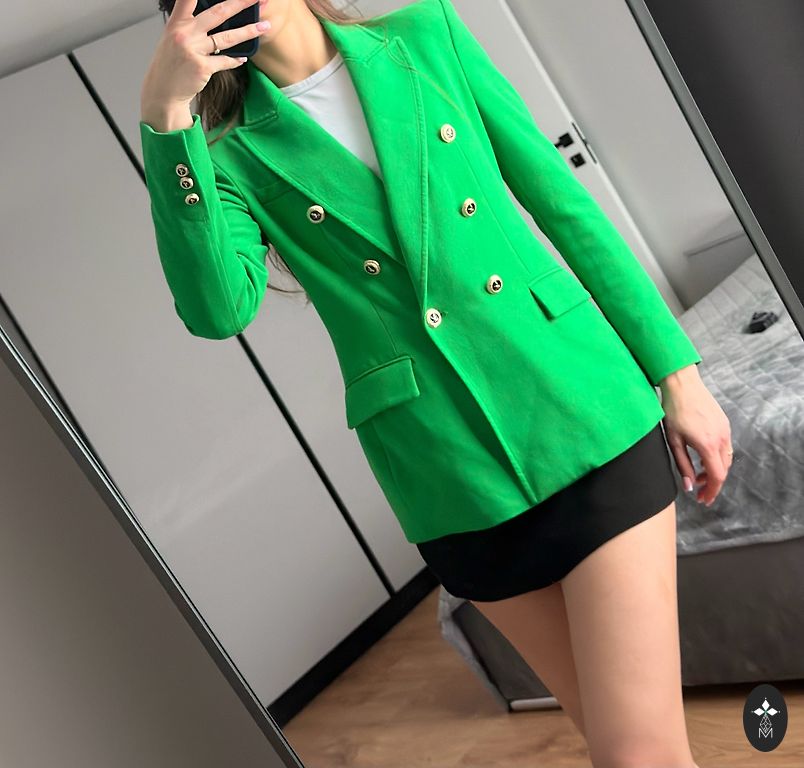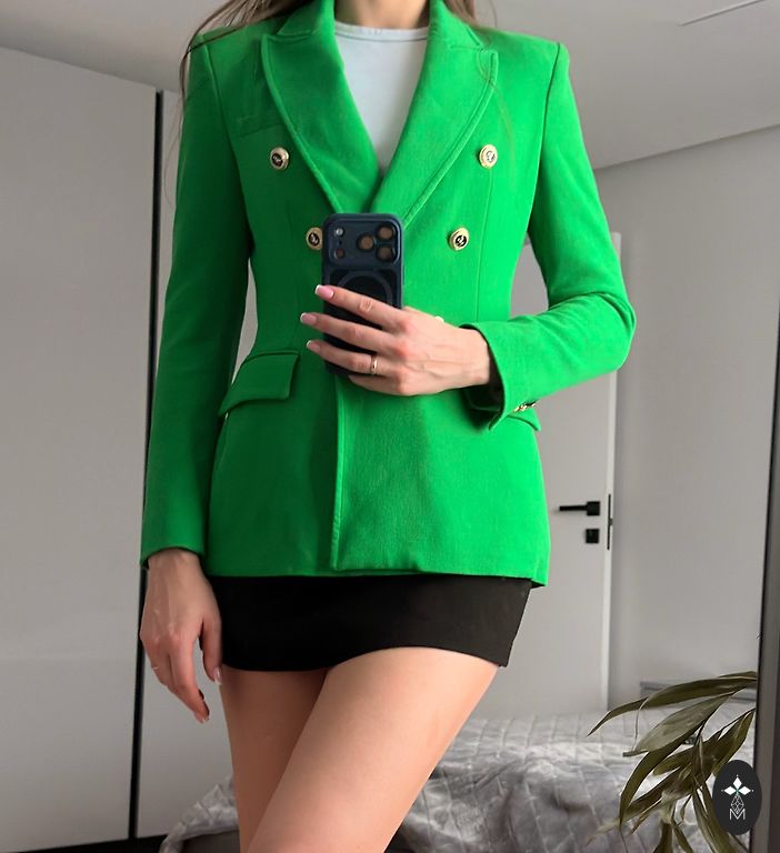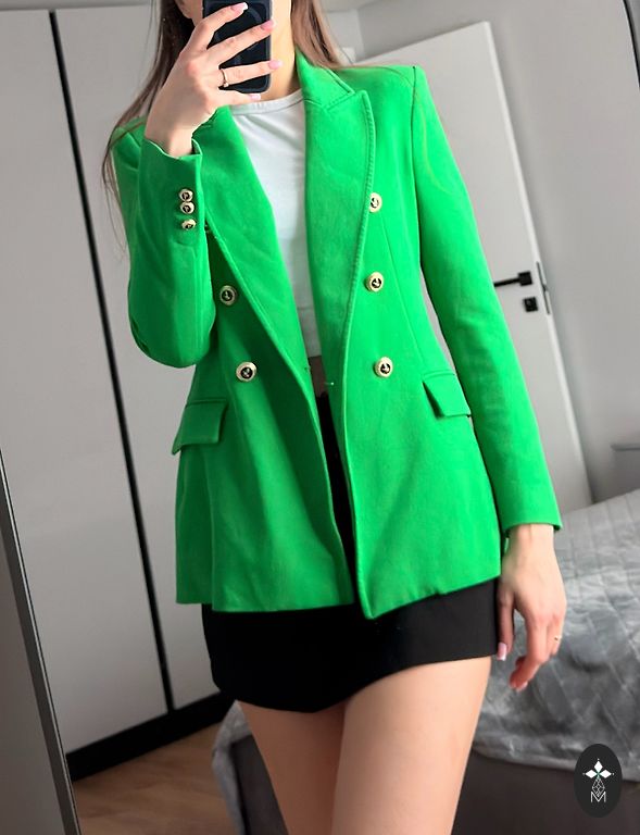 Красивая темно-синяя короткая куртка Rinascimento с 4 пуговицами, каждая пуговица разная. Длина куртки 54 см, длина рукавов 58 см. Указан размер M, но подойдет на XS и S.