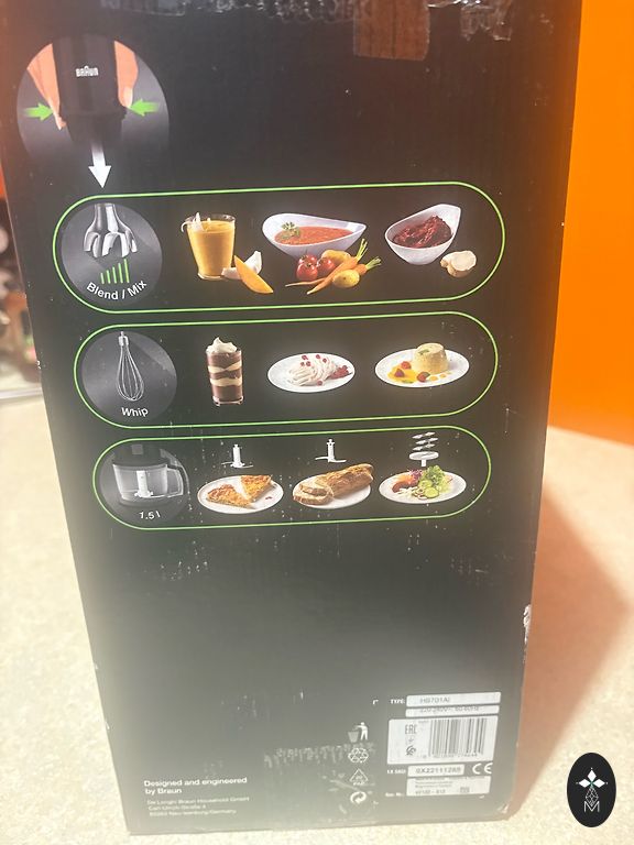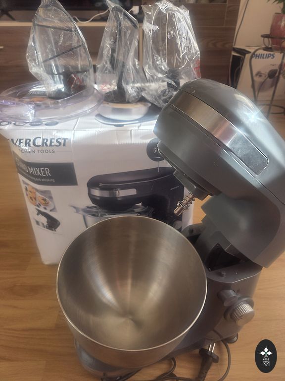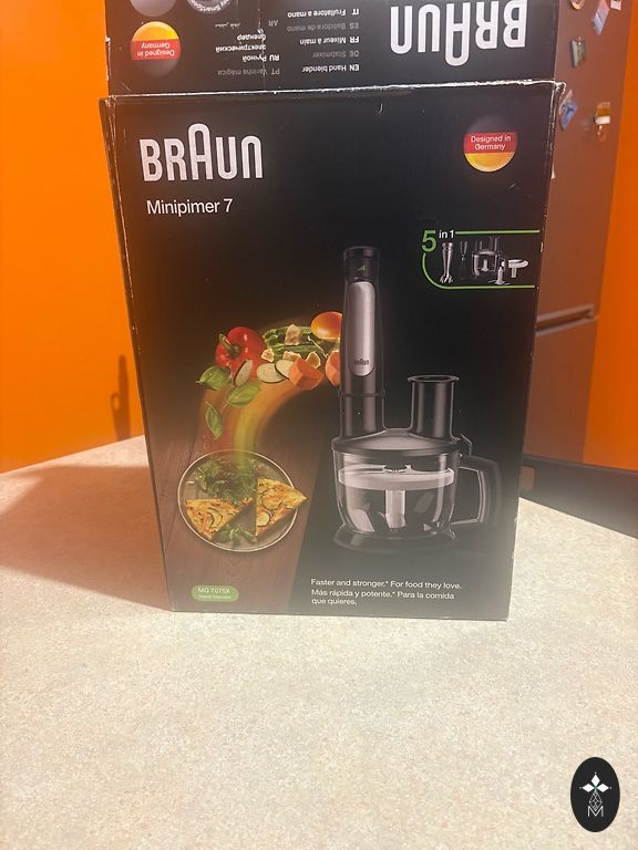 New, unused! A fantastic shredder, we have the same one, this was gifted. 5 different attachments that grate/shred various products in seconds, various vegetables (carrots, onions, potatoes, zucchini, etc.), cheese, chocolate, apples, etc. The attachments can be washed in a dishwasher, easy to assemble, takes up little space when stored.