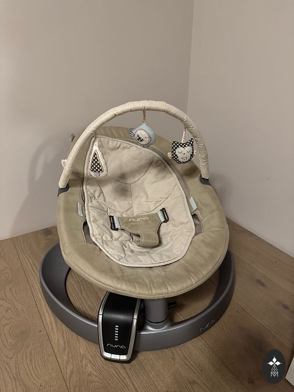 A NUNA cradle used for three months. Suitable for children from birth to adults. The rocking motion lasts up to 2 minutes, requiring a gentle hand movement to initiate. No batteries needed, no wires, no humming, no noise. Cuddle together with the infant. Ideal resting position for your child.