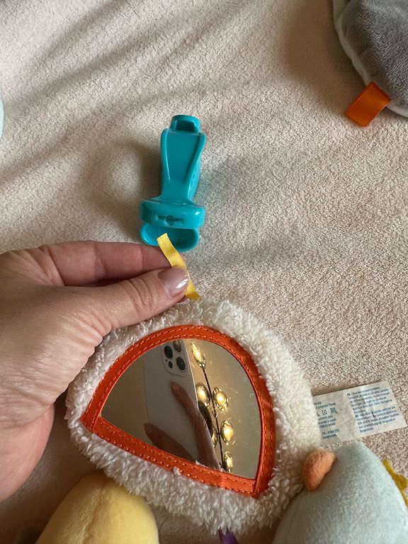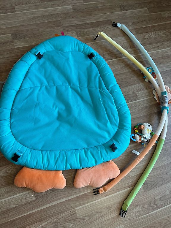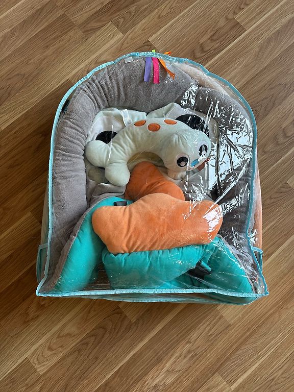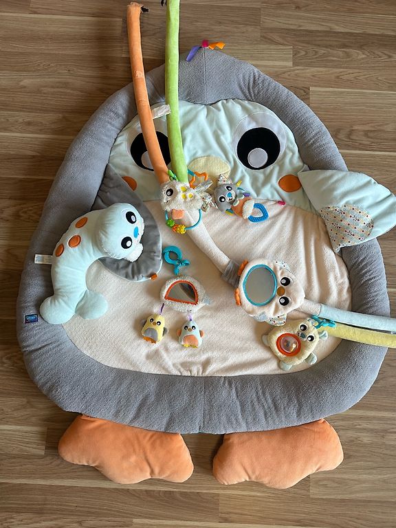 Skaists, liels pingvīna formas paklājiņš bērnam. Interesantas mantas, spogulis, vēdera spilventiņš. Skaistas krāsas
