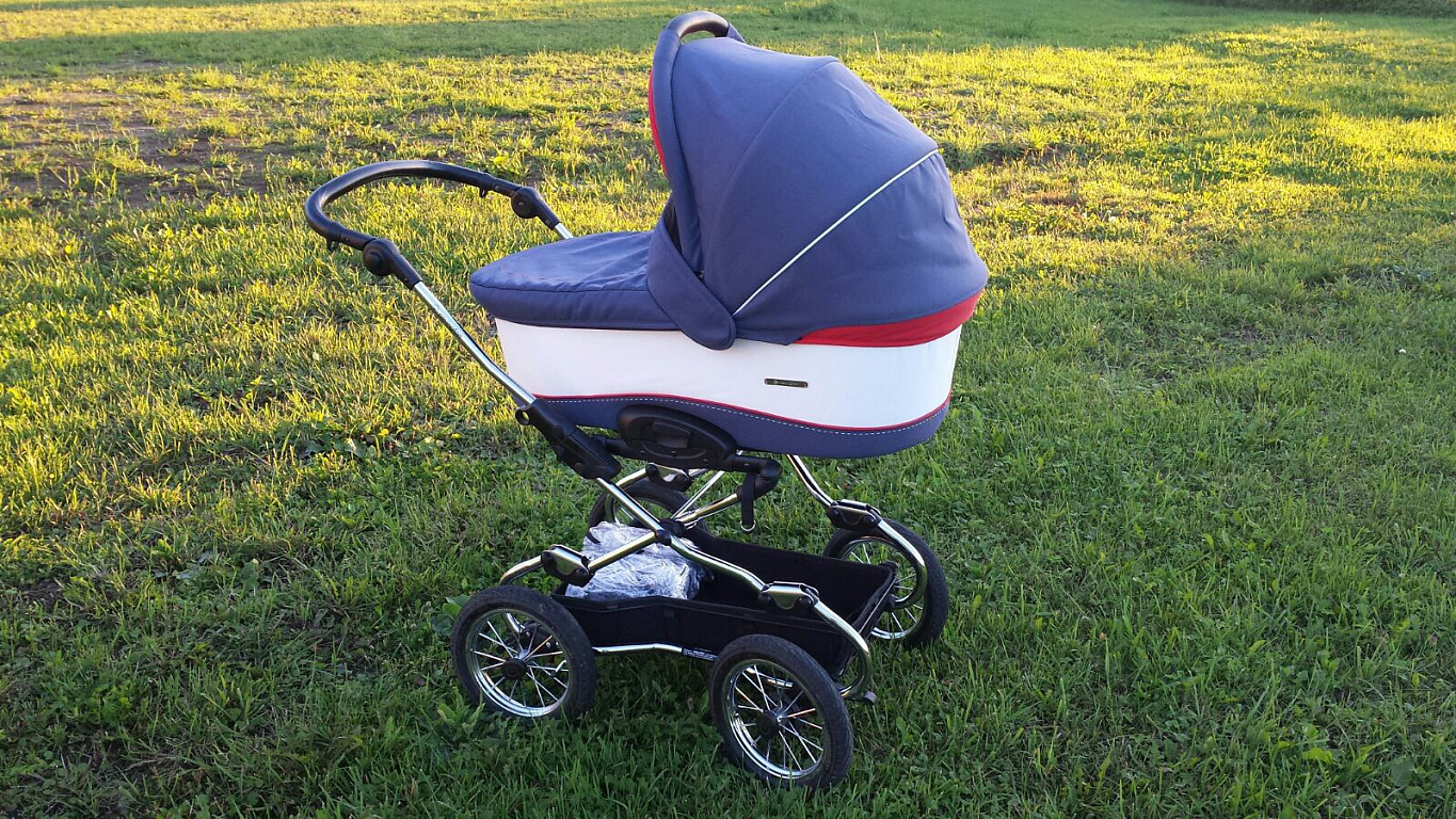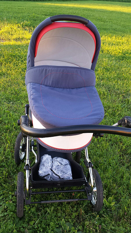 Parduodu vežimėlio lopšį geros būklės. Naudojo vienas vaikas. Naudotas 8 mėn. Yra nedideli įbrėžimai ant rėmo ir po metaliniu tinklu (neapgalvotas gamintojo defektas). Vežimėlio vidus švarus, nes visada buvo padėtas kokios nors paklodės. Vežimėlis patogus, nes dideli ratai, kurie užtikrina patogų judėjimą per nelygiausius paviršius ir smėlį. Komplekte: lietaus plėvelė, buteliuko laikiklis, krepšys, kuriame patogu viską sudėti, ko vaikui reikia, ir krepšys ant tinklo po lopšiu. Esu sulaukusi daug komplimentų dėl vežimėlio, gatvėje net nepažįstami žmonės priėjo ir klausė, kur pirkau. Galiu pristatyti į Jelgavą, Bauską už papildomą mokestį į Rygą.