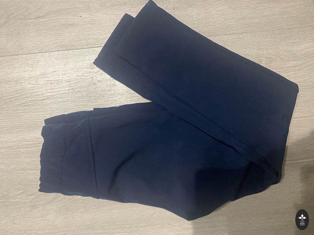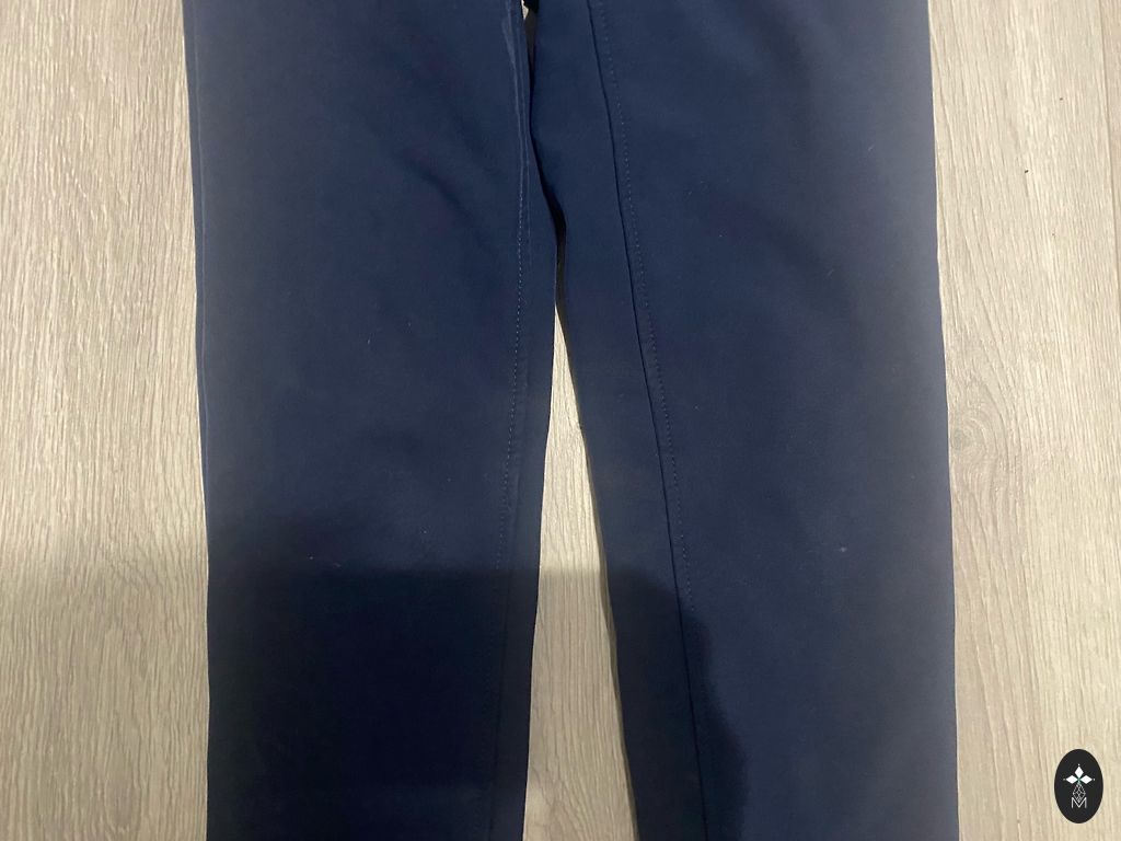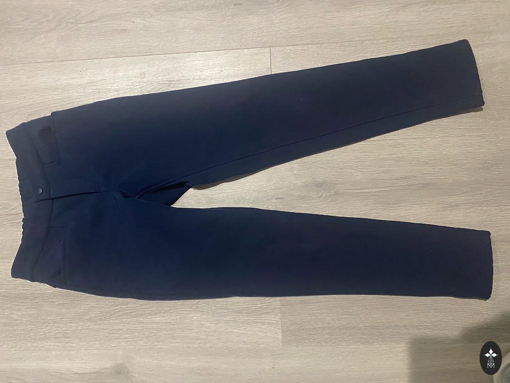 Kelnių ilgis 71 cm, vidinės siūlės ilgis 45 cm. Kelnės tiek geros būklės tiek iš vidaus, tiek iš išorės, nėra nutrintos, tik vienos kelnių klešnės apatinė kraštinė pažeista (paskutinėje nuotraukoje).