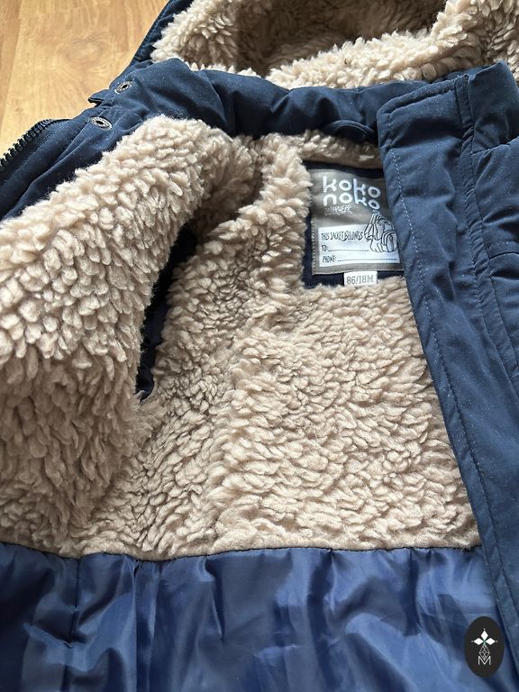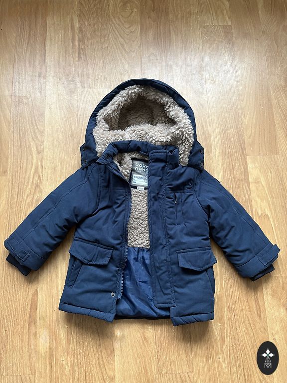 Puffy, warm jacket. Removable hood.
