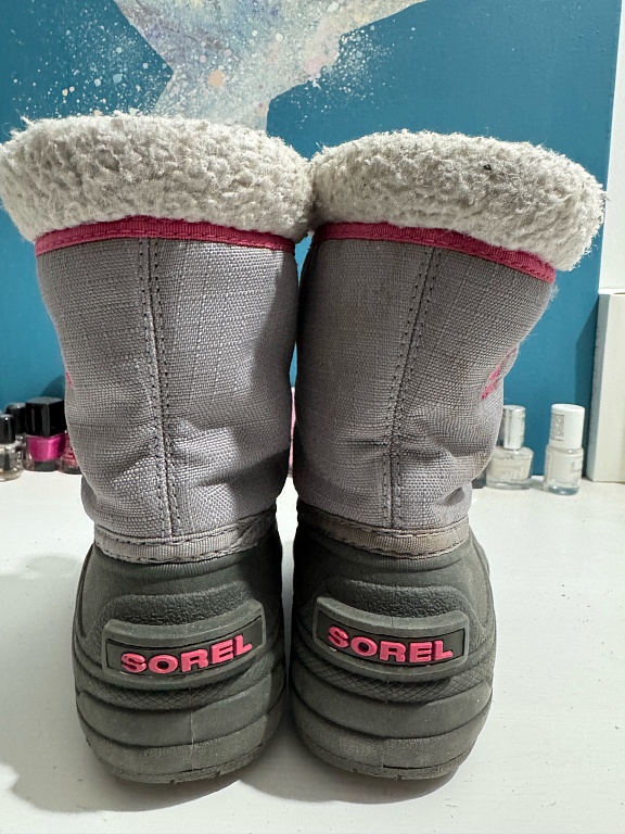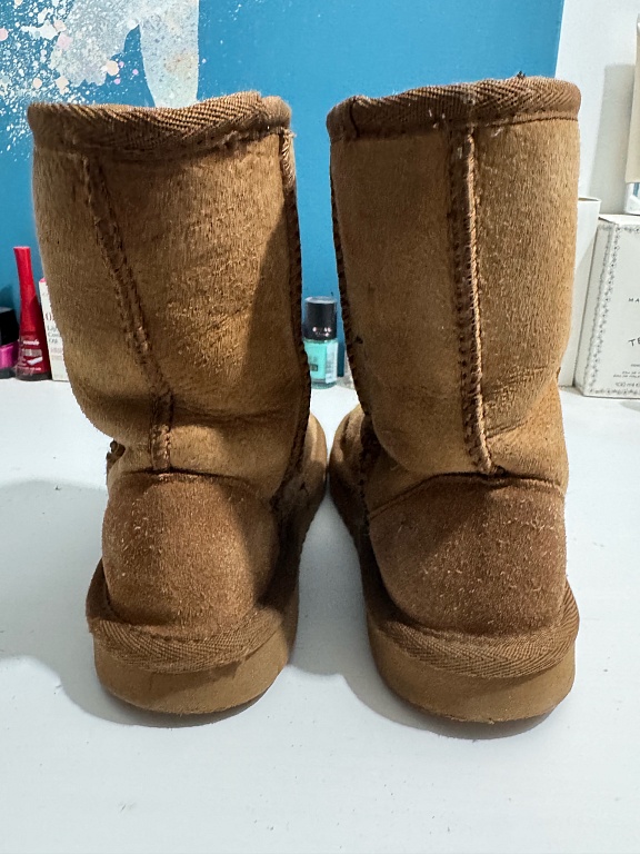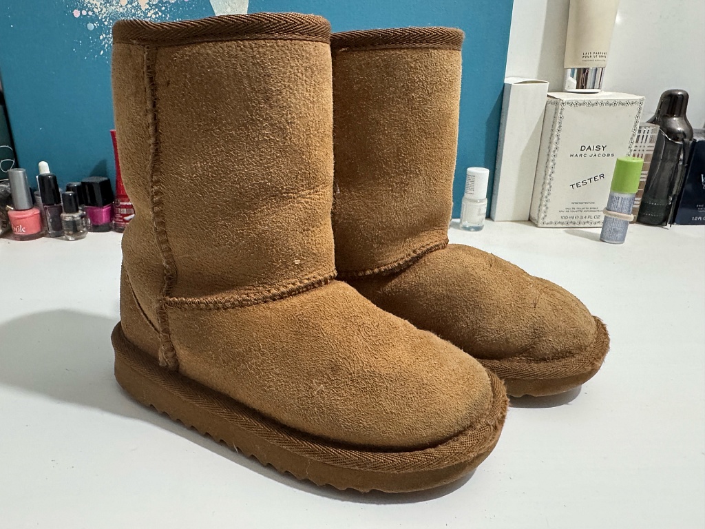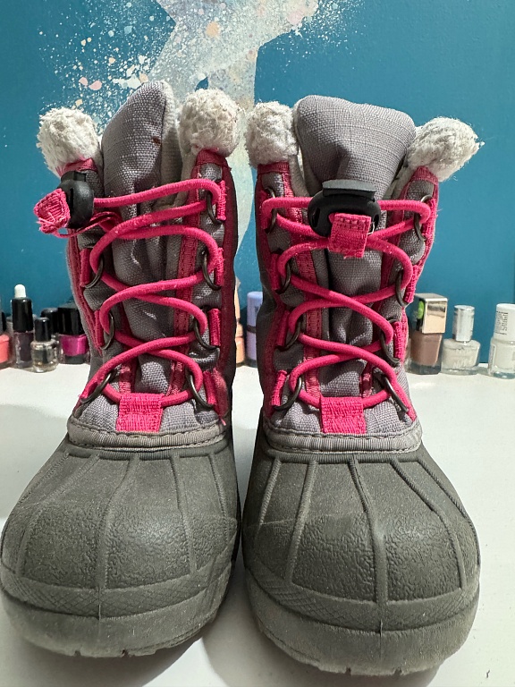 A nice bell-shaped coat for a girl. Has served two girls well. There is slight wear visible on the buttons. The size tag is cut off, but we assume it no longer fits the daughter this year. Perfect for visits or formal events. Very warm.