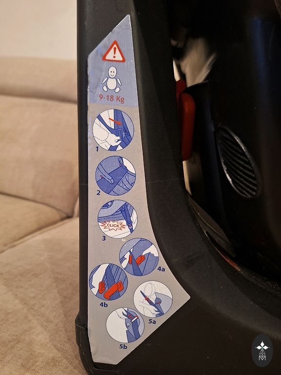 Car seat designed for children ~ 9–18 kg (approximately 9 months to ~4 years). It has a 5-point safety harness system.