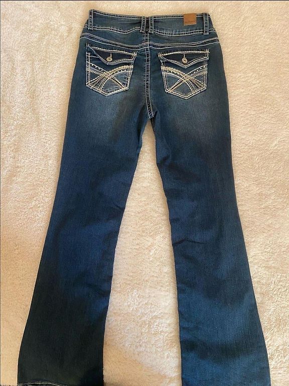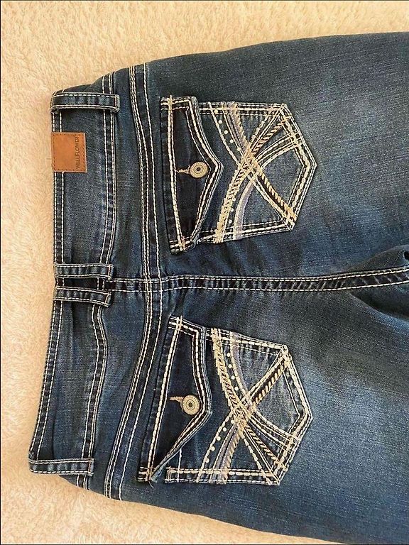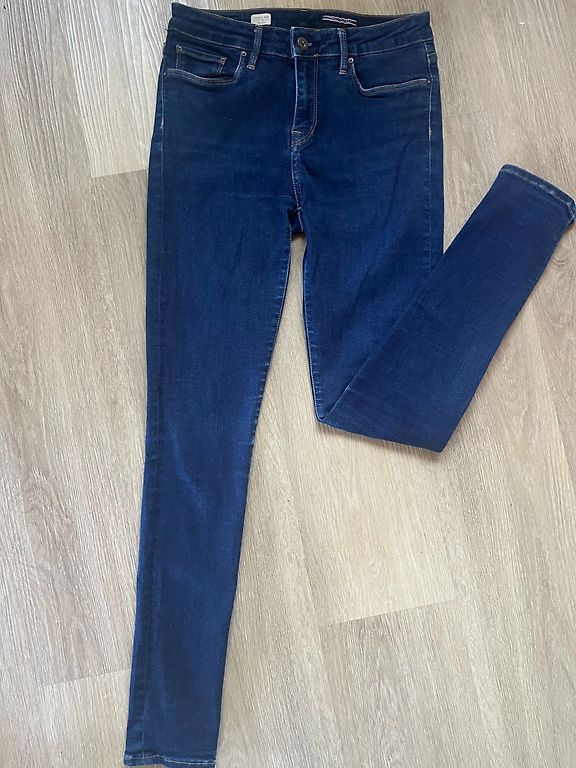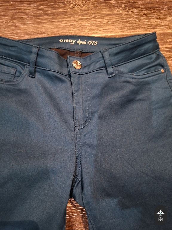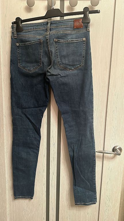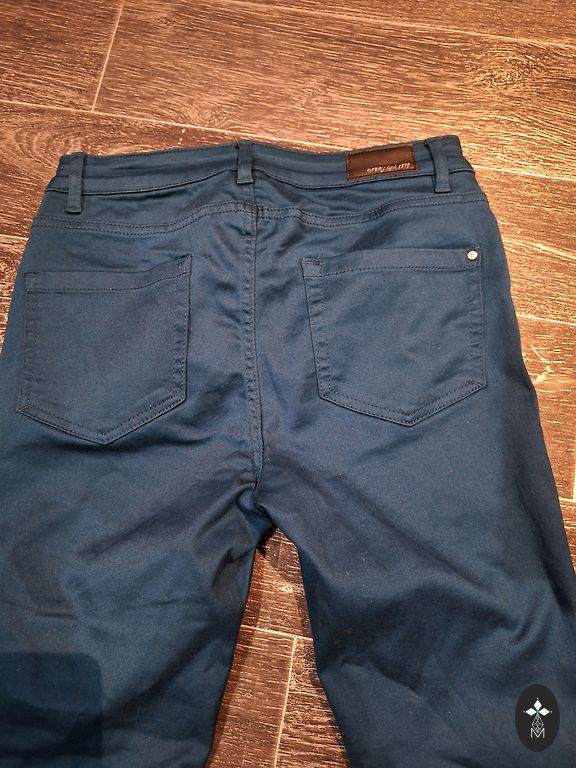 Zili, 38.izmērs, pirku uz savu 1,76 cm augumu. Ar vidēji augstu jostasvietu un piecām kabatām. Platas staras. Ļoti ērti un brīvi. Noglabāti skapī, vienreiz uzvilkti, dodu tālāk.
