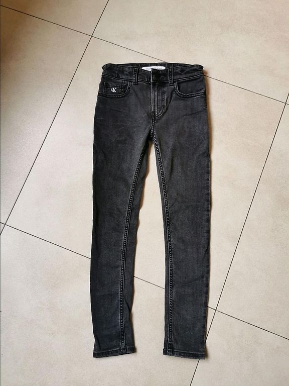 Pelēkas džinsas, izmērs 170. Bikšu garums no jostasvietas 96 cm. Viduklis 40 cm, iekšpusē ir gumijas regulēšanai.