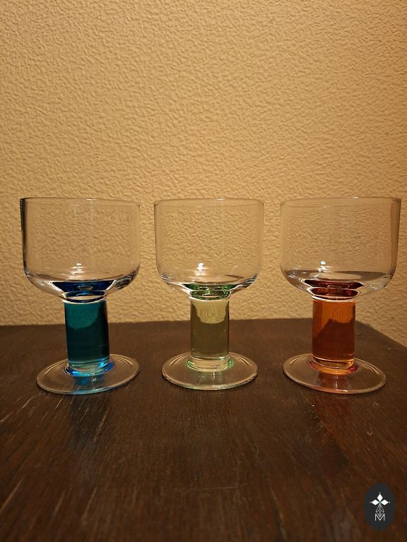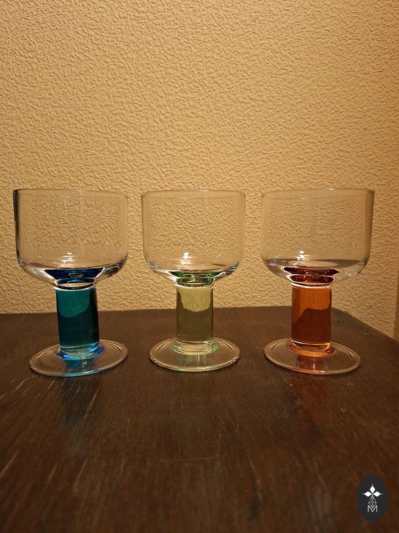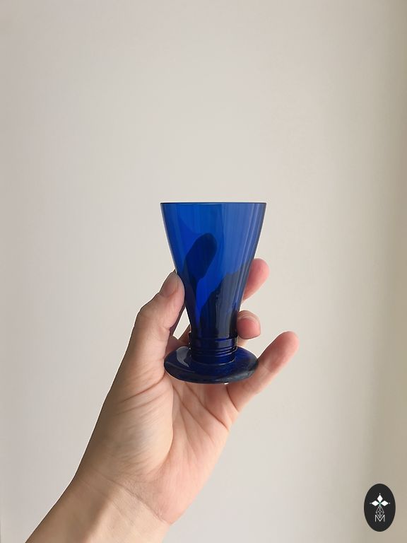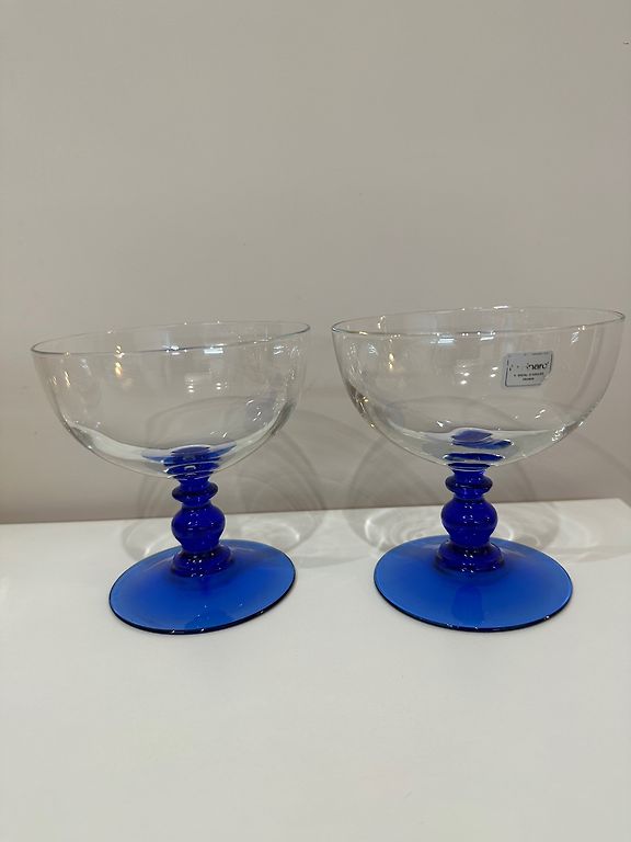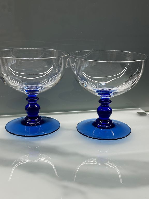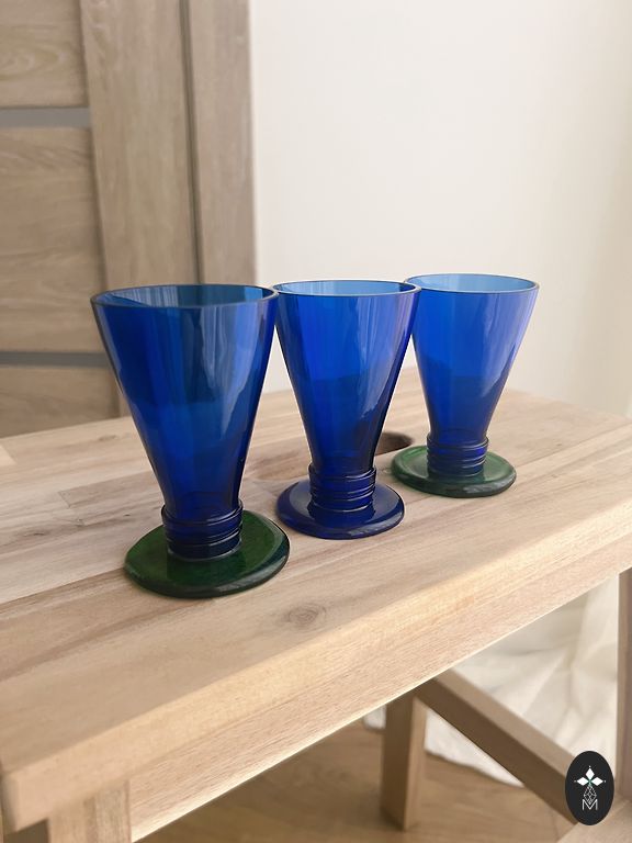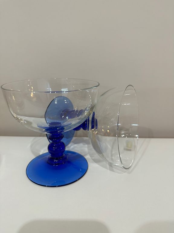 Eleganti tamsiai mėlynos spalvos taurės su kojelėmis.