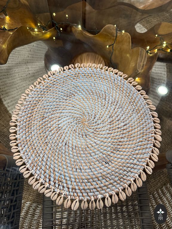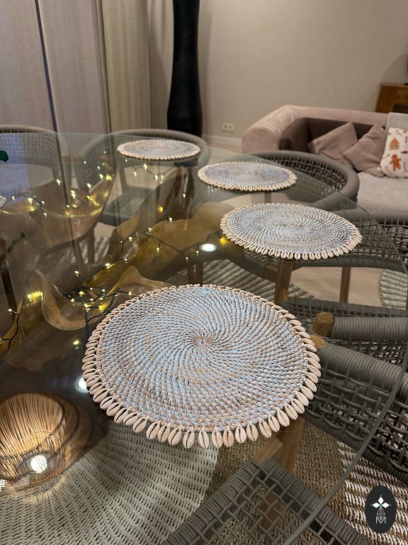 Parduodu naujus stiklo/pokalų padėkliukus iš rotango su tikromis kriauklėmis. Rankų darbas. Skersmuo 14 cm. Galima pirkti 1 vnt - 6€.