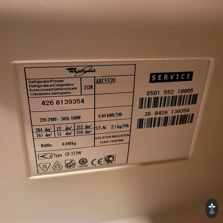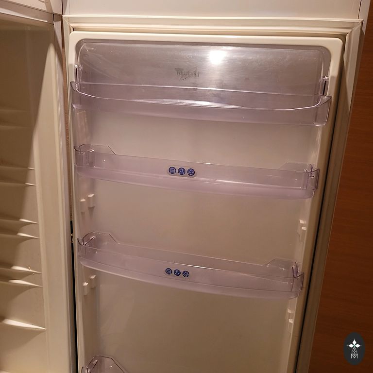 Of defects: missing handle for the refrigerator door, but does not interfere with opening/closing.