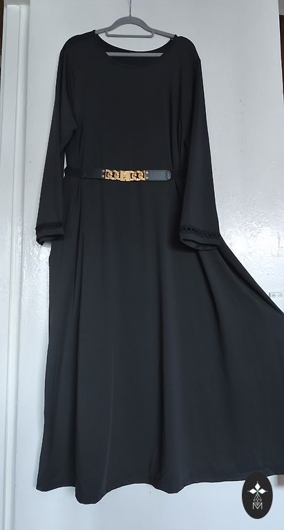 Размер S • черное платье с длинными рукавами и розовым цветочным узором • воздушный материал с подкладкой, не прозрачное