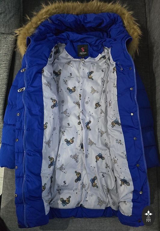 Ļoti kvalitatīvi pašūtā ziemas jaka , ar rāvējslēdzējiem uz rokām un sānos , un podziniem un rāvējslēdzēju priekšā