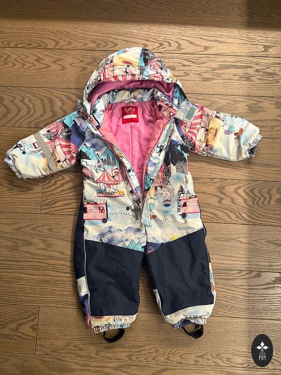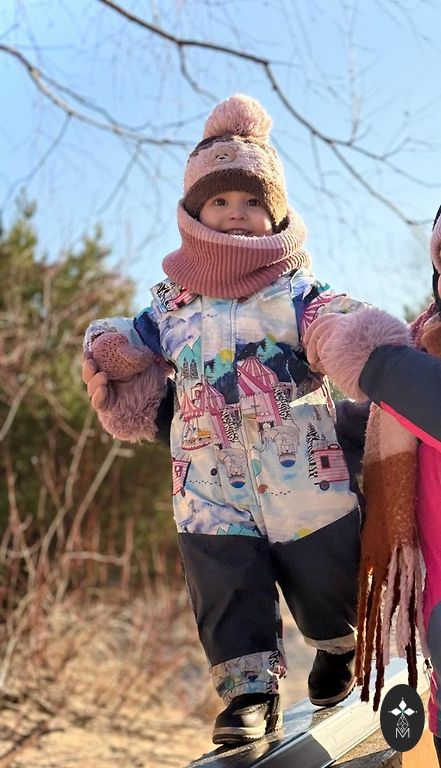 Praktiškas kombinezonas - žiemai yra natūralios avikailio pamušalas, pavasarį pamušalą galima išimti (žr. nuotrauką). Gobtuvas, pirštinės, batai - viskas atsisega. Labai gražus ir patogus daiktas mažylei.