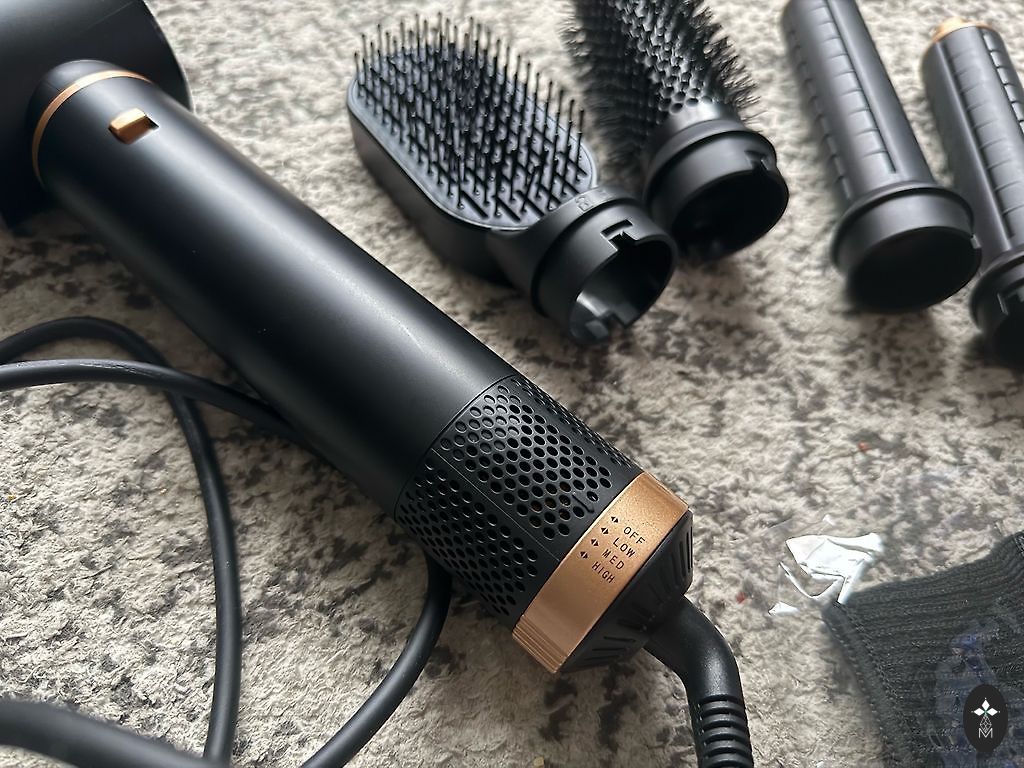 Фен-Стайлер. 5 в 1. Продаю вместе со всеми насадками и кейсом для хранения. Для моих коротких волос оказался слишком навороченным.