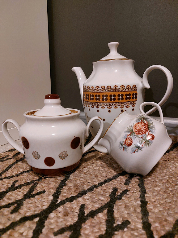 Beautiful, elegant Silesian coffee pot with lilac flowers. Unfortunately, the lid is missing.