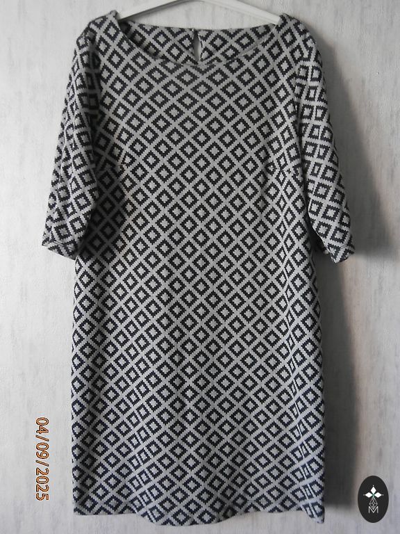 Beautiful dress with metallic thread in a straight silhouette. Pockets on the sides. Length 98 cm Sleeve 3/4 - 33 cm Bust - 60×2