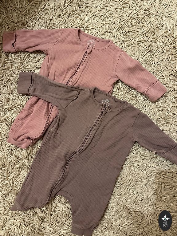 Trys pižamytės su dvigubais užtrauktukais. Naudotos porą mėnesių. Nurodytas dydis 3-6 mėnesiai.