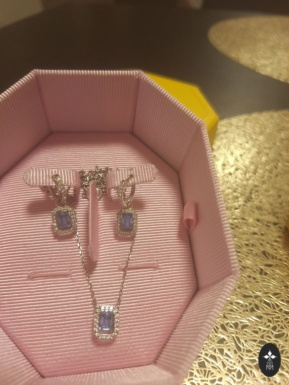 Retro kaklarota, rokassprādze,auskari. Gaišzili un tumšzili cirkoniņi. Ugunsgaismā dod briljanta spīdumu .kaklarotas garums regulējams.