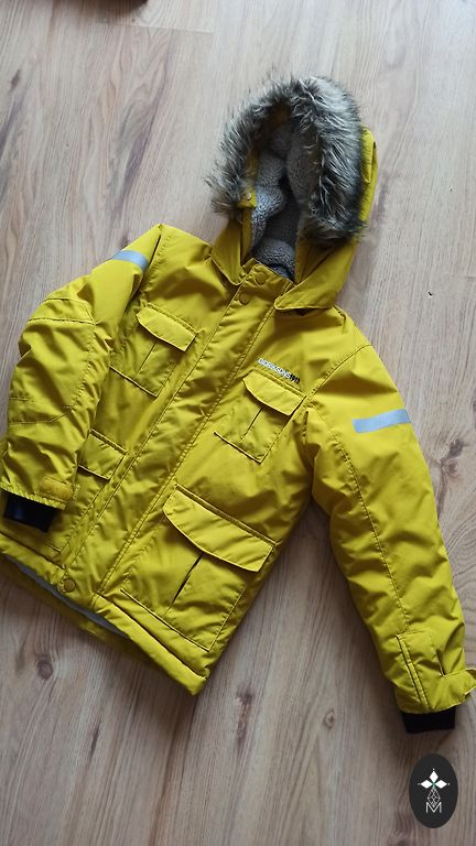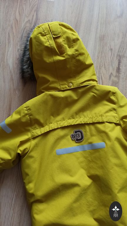 Vilkas vienas vaikas. Striukė yra stora.
