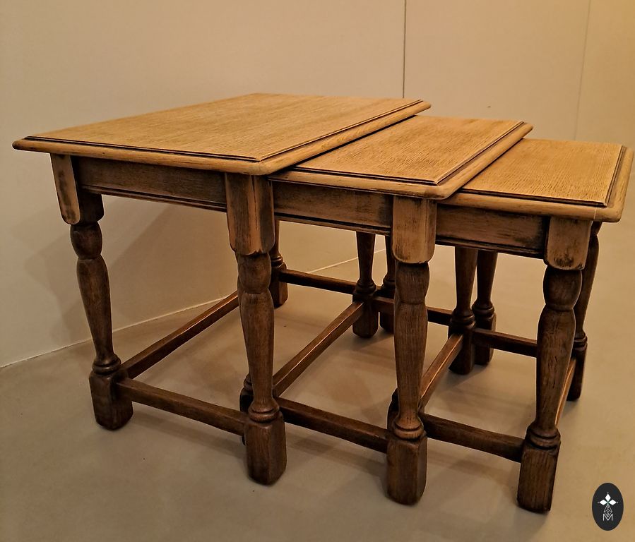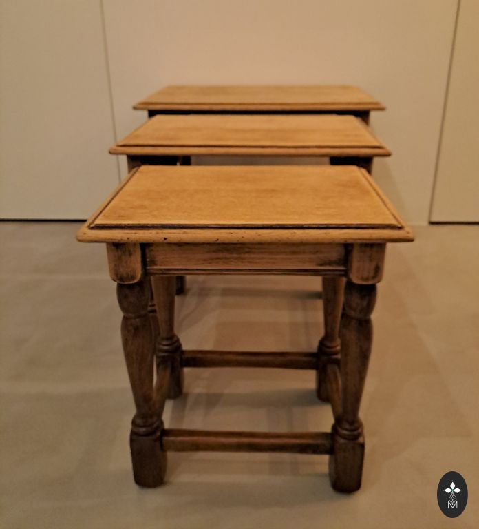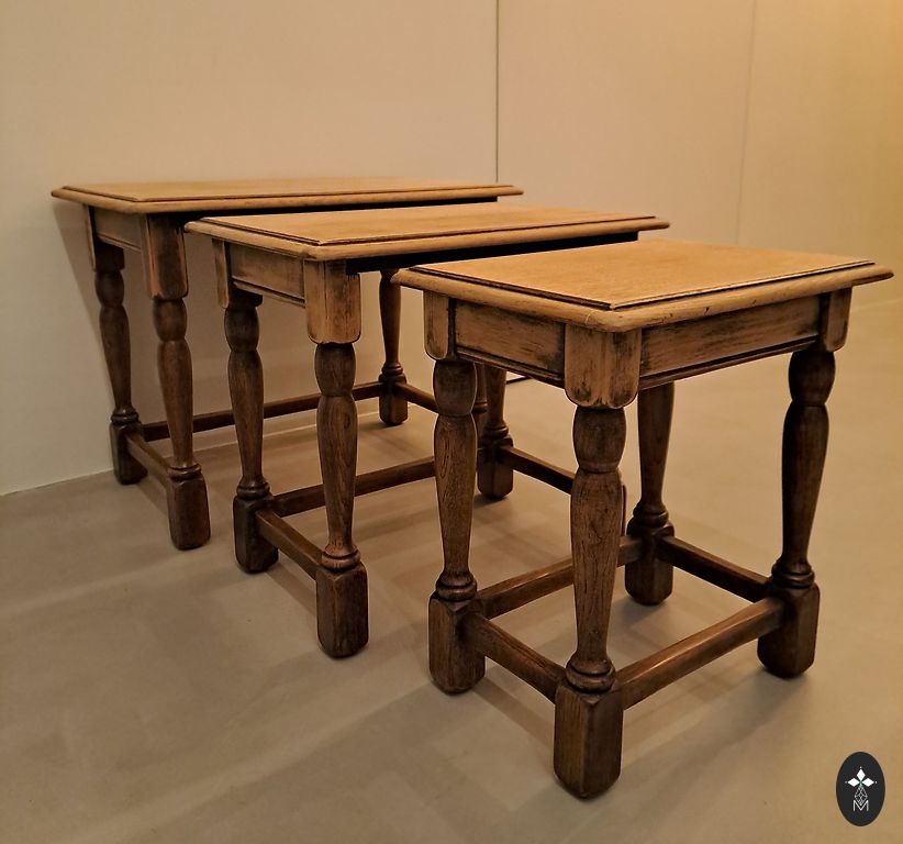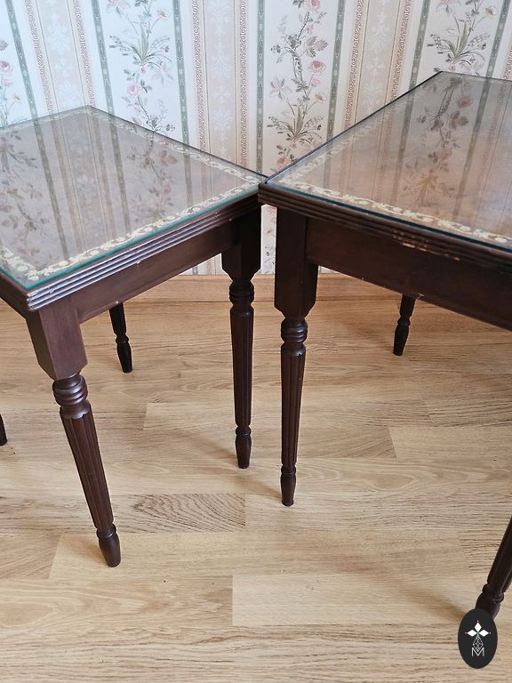 Lauakomplekt, ilus oliivroheline, ilusate, maitsekate plaatidega. Mõõtmed 63,5x32, 49x33, 33x34 cm. Kõrgus 40, 35, 30 cm.