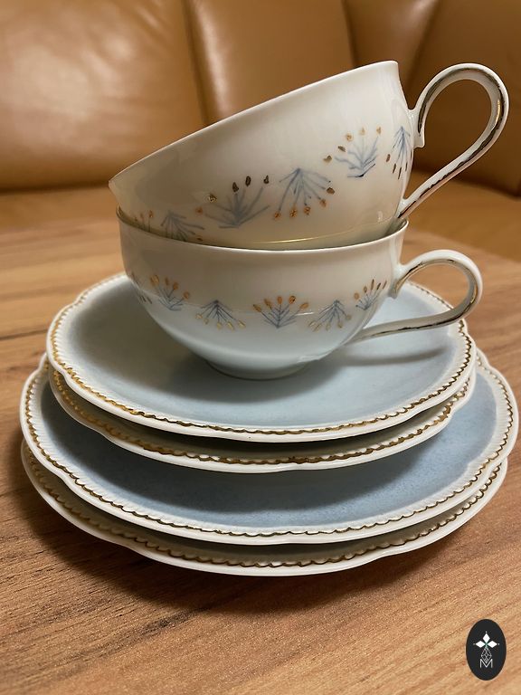 Thin-walled porcelain coffee Tet-a-Tet service with Far Eastern mood decoration. The dishes are made using the technique of swirling relief. Decorated with luster, the decal is complemented with hand painting and a dark color outline. The author of the form is Levons Agadžanjans. The design was developed in 1984, but produced from 1985 to 1996. Levons Agadžanjans (1940 - 1999) was born in the city of Kumairi, Armenia, and was a charismatic and creative personality in the Latvian art scene of the second half of the 20th