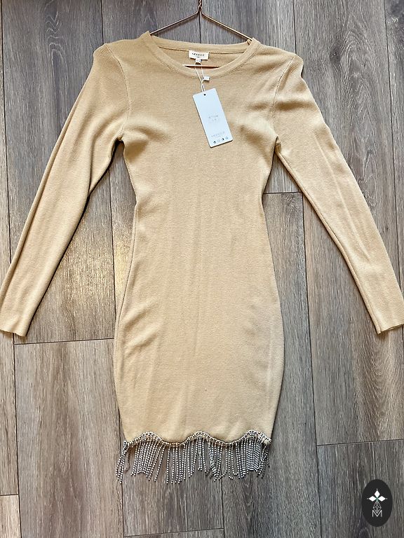 Lõige rõhutab taljet, kangas on meeldiv ja veidi elastne.