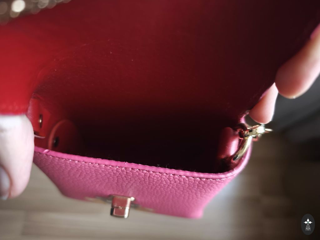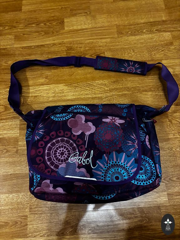 The bag has a long strap and short handles