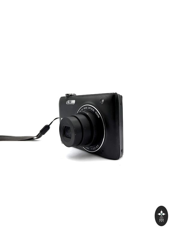 Komplektis on fotokaamera, aku, mälukaart, ümbris ja laadimiskaabel