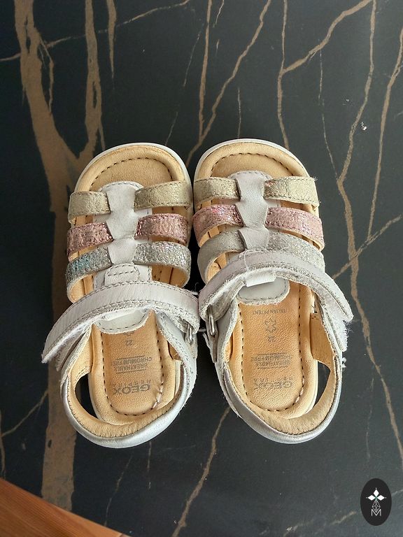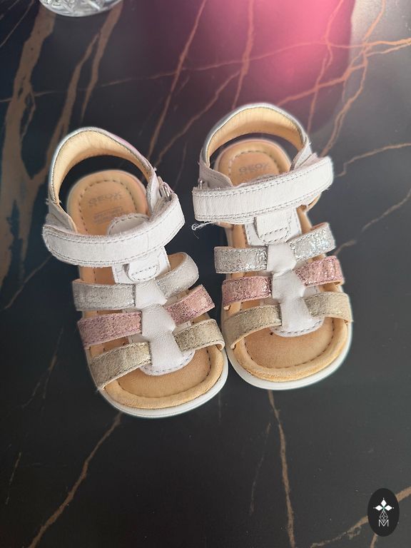 Geox LED sandalai. 26 dydis, vidpadis 16 cm. Pritaikoma siauresnei, platesnei pėdai. Su LED švieselėmis, įmontuotomis širdelėse. Priekyje šiek tiek nutrinta, bet vis tiek puikios bateliai.