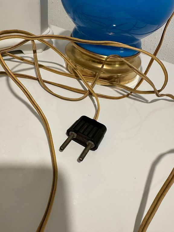 Two, inseparable, beautiful table lamps. Wood, brass, ceramic + velvet shades. Height 40cm, shade diameter 23cm. The price is indicated for both.