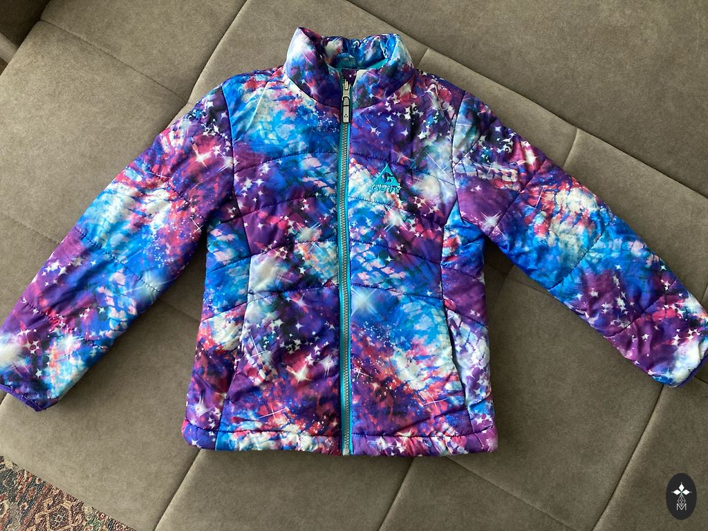 Used winter jacket, slightly faded in places, but no holes and definitely still useful for the garden :)