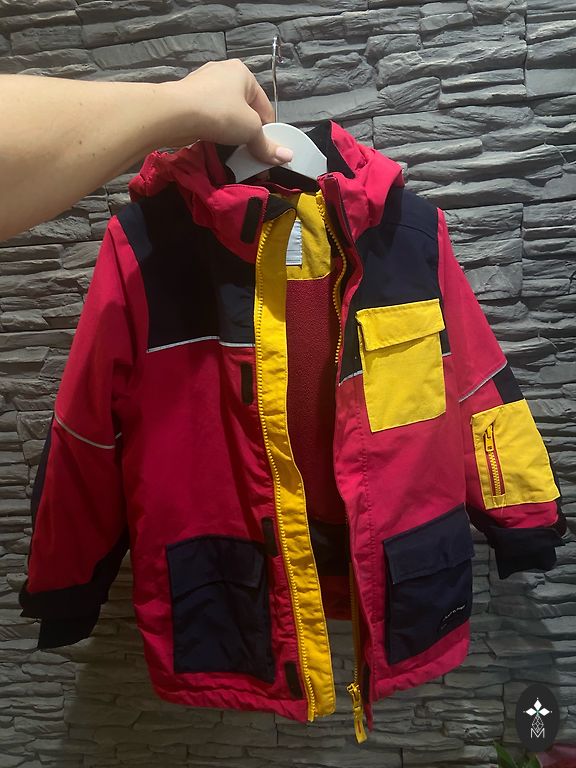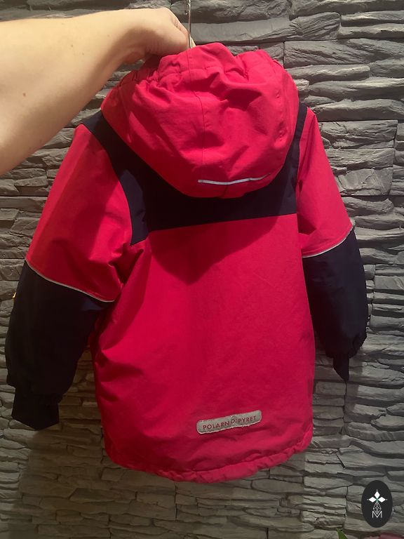 Size 110, we wore it earlier. The hood is removable.
