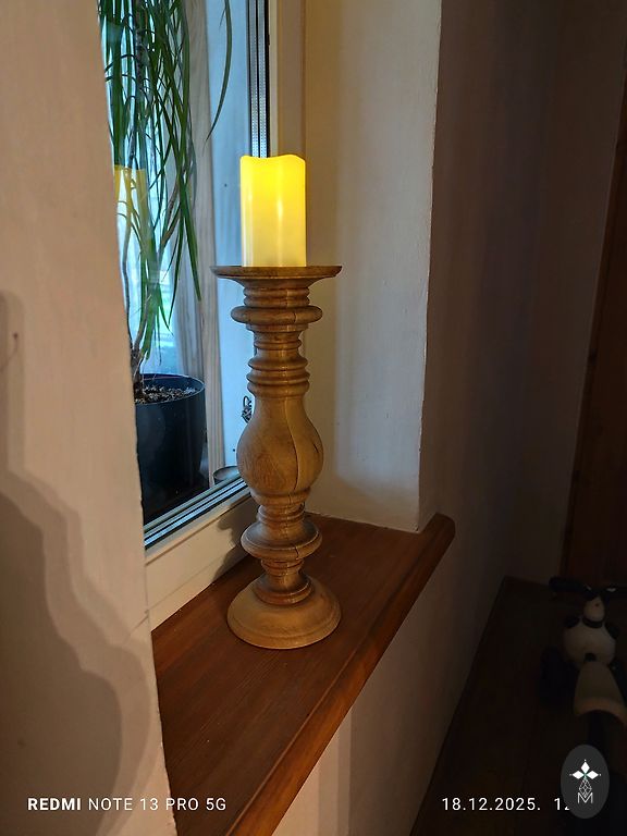 Svečturs no vara/bronzas/misiņa sakausējuma.Der divu veidu svecēm.Stabils. Augstums 39cm.Apakšējais diametrs 14cm.,augšējais 8,5cm.