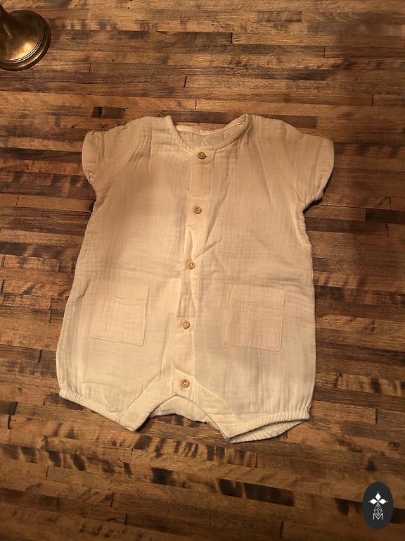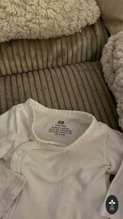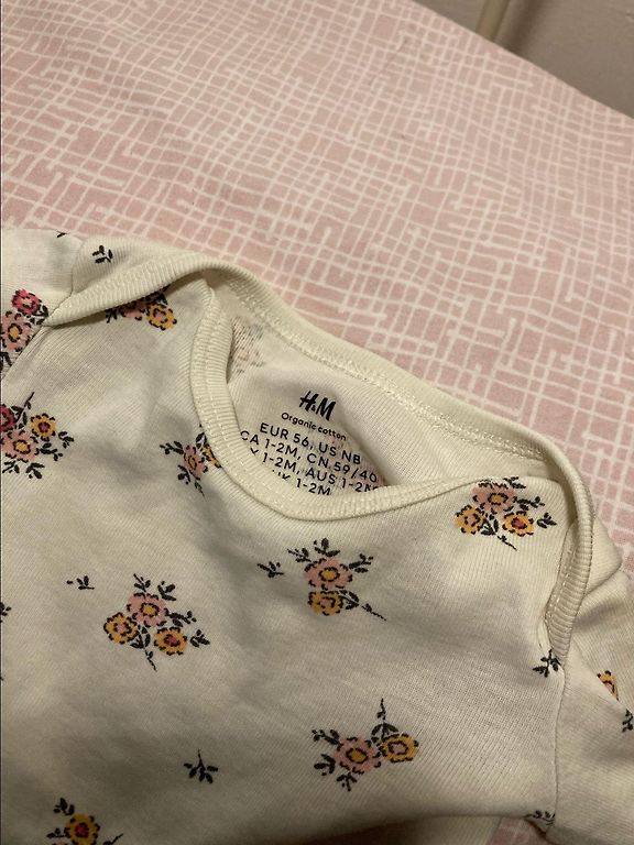 White long-sleeve Pinocchio bodysuit, size 50+, purchased in October, lightly worn as it's already too small 🤷