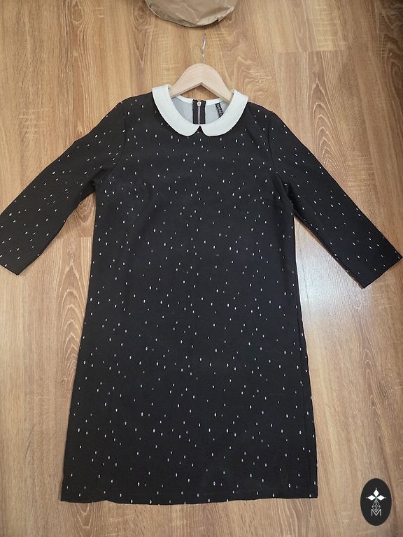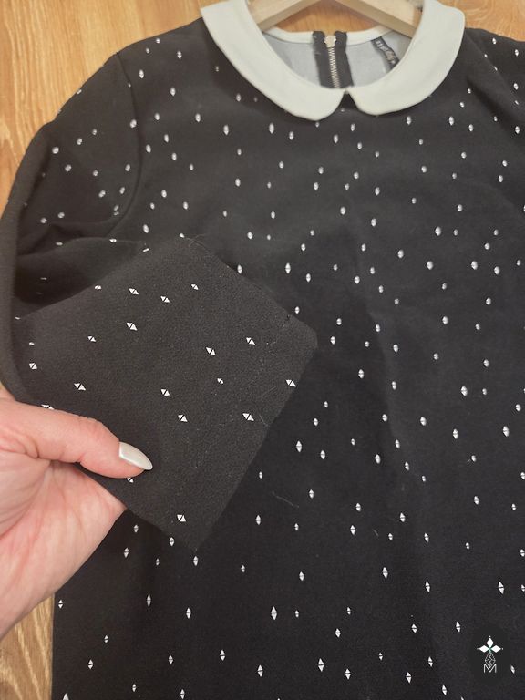 Garums 90 cm, piedurkne 3/4, piedurknes garums no kakla 50 cm, no pleca 44 cm, no paduses līdz padusei 40 cm, plecu platums 34 cm, nevar izstiepties, aizmugurē rāvējslēdzējs.