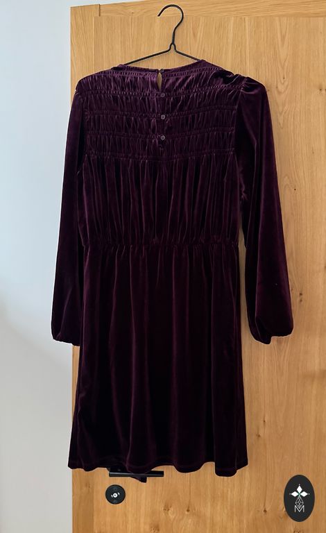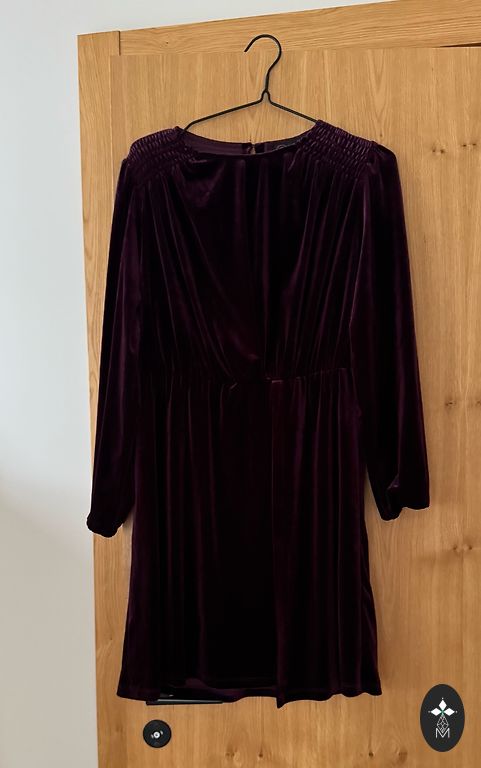 Темно-зеленое, очень теплое длинное шерстяное платье, прямое с поясом.