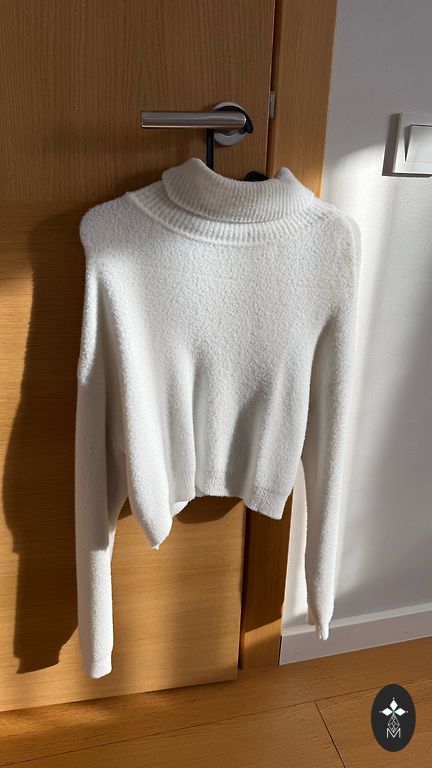 White sweater with a turtleneck.